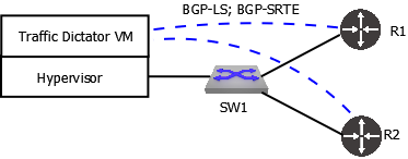 For example, on the topology below, R1 and R2 are connected to SW1; the switch is connected to the server on which Traffic Dictator runs in a VM.